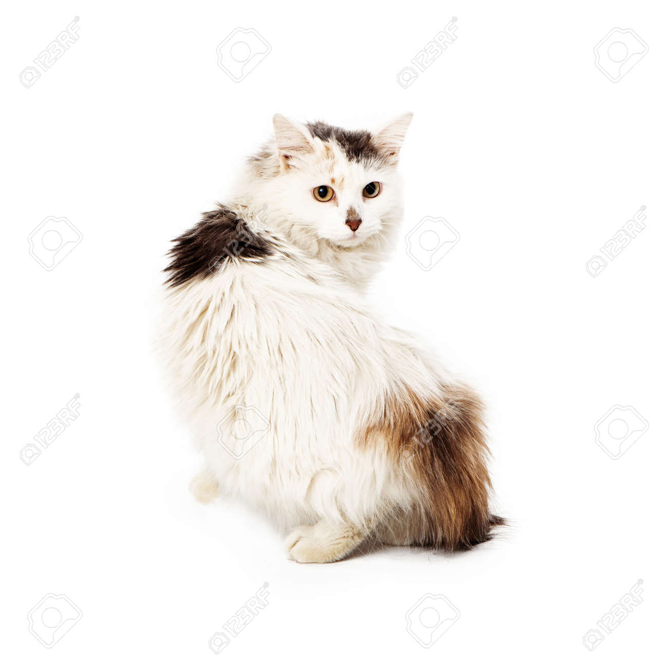 Spotted Long Haired Cat Looking Back Stock Image K Fotosearch