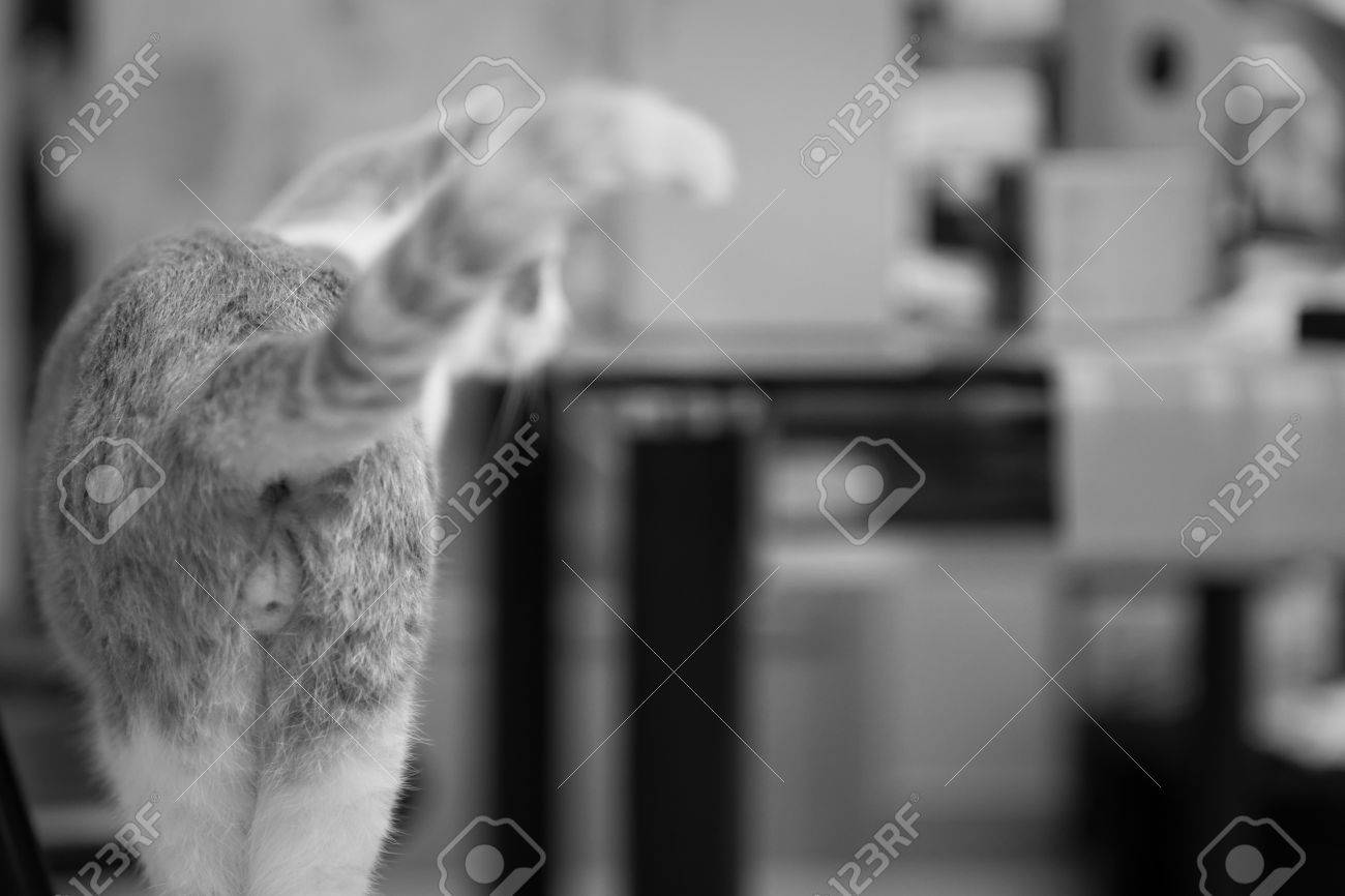 Cat Walking Away With Tail Up In The Air Stock Photo Picture And Royalty Free Image Image