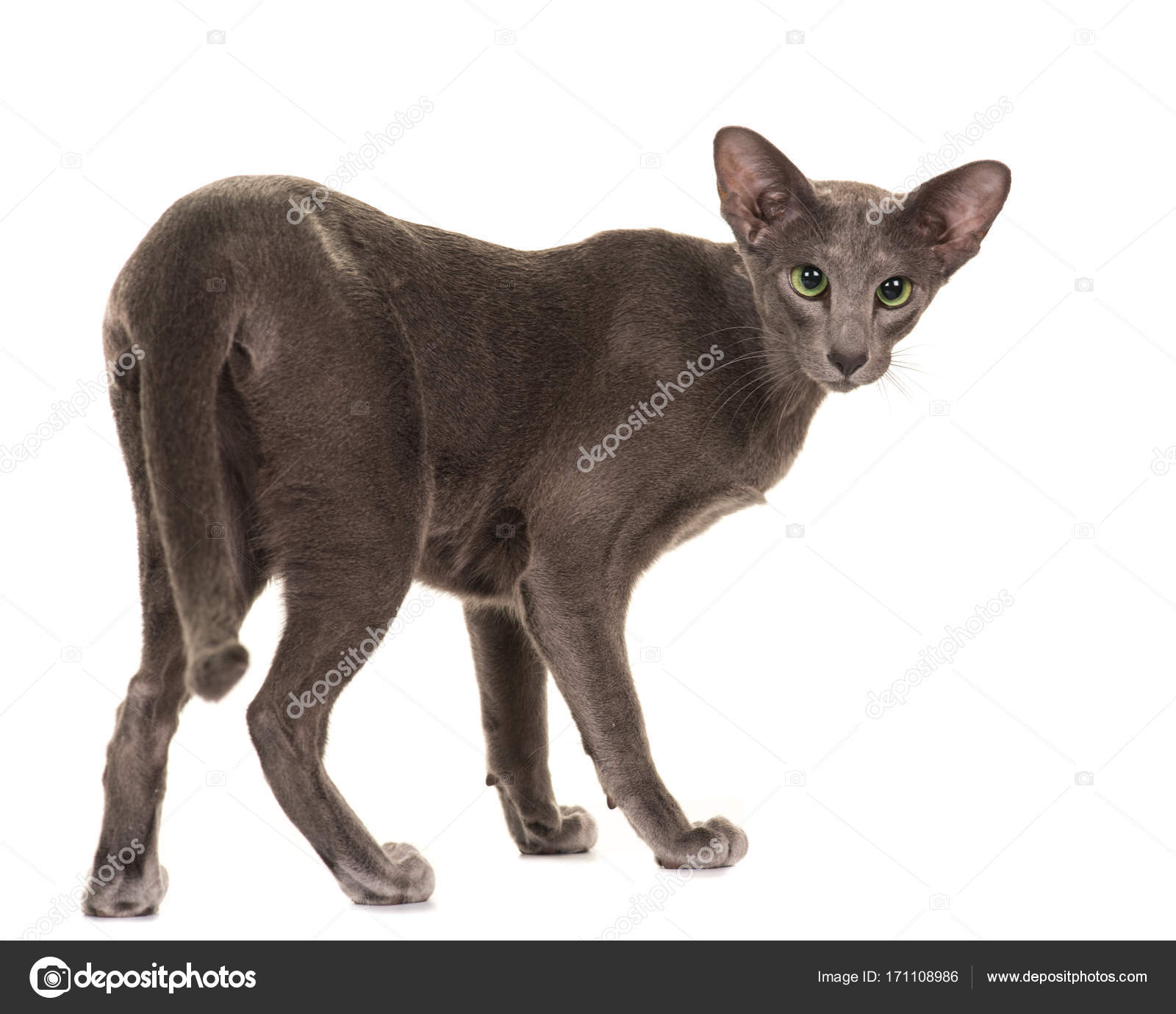 Grey Siamese Cat Walking Away En Looking Around Isolated On A White Background Stock Photo C Miraswonderland
