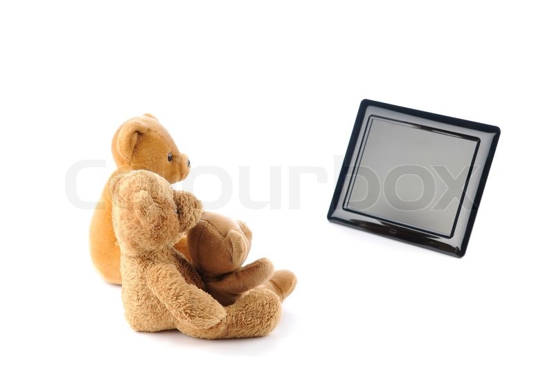 Teddy Bears Watching Tv Isolated On A Stock Image Colourbox