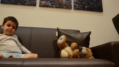 Cute Two Years Old Boy Watching Tv With His Teddy Bear Footage