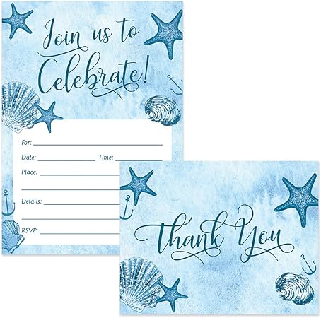 Inviti Per Qualsiasi Occasione 25 E Biglietti Di Ringraziamento Abbinati 25 Set Con Buste Con Tema Marino Spiaggia Nautico Compleanno Laurea Celebrazione Biglietti Di Ringraziamento Piegati Amazon It Salute E Cura Della Persona