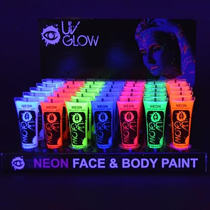 24x Uv Glow 10ml Vernice Fluorescente Pelle Viso Corpo Colore Uv 8 Colori Diversi Neon Glow Fluo Amazon It Bellezza