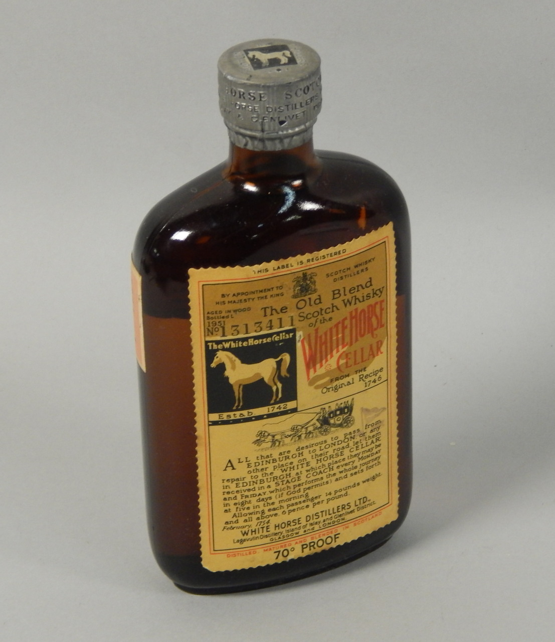 EBay item number Seller assumes all responsibility for this listing Item specifics Condition. White Horse Cellar Blended Scotch Whisky Flat Bottle Early 1940s $3,600 AUD White Horse Cellar Flat Bottle Blended Scotch Whisky 1940s $3,750 AUD White Horse Cellar Scotch Whisky 1950s $1,400 AUD. White Horse The Blended Scotch Whisky of the White Horse Cellar Overall rating 8700 / 100 votes 7 Category Blend Bottler White Horse Distillers (WHD) Bottled 1960s Strength 8680 (proof) Size 757 ml 757 ml Label 4/5 quart, 868 proof Spring Cap Bottled for Browne Vintners Company Inc, New York City, NY.