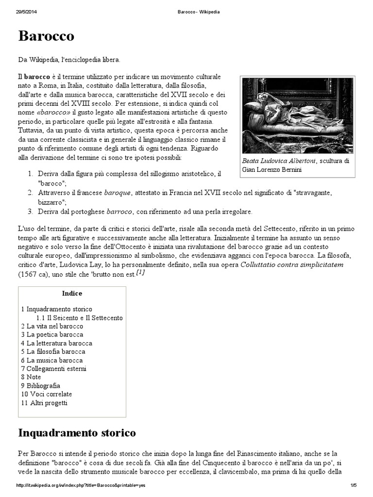 Parla delle scuole nazionali e fai qualche esempio Page updated. Il mito classico nella cantata da camera romana del tardo Barocco primi accertamenti Bologna, Diciannovesimo Incontro dei Dottorati di ricerca in Discipline musicali, «Il Saggiatore musicale», 23 maggio 15 dalla configurazione della forma alla definizione del testo L'analisi degli schizzi e di altri materiali preparatorii. Il barocco è il termine utilizzato per indicare un movimento culturale nato a Roma, in Italia, costituito dalla letteratura, dalla filosofia, dall'arte e dalla musica barocca, caratteristiche del XVII secolo e dei primi decenni del XVIII secoloPer estensione, si indica quindi col nome «barocco» il gusto legato alle manifestazioni artistiche di questo periodo, in particolare quelle più.