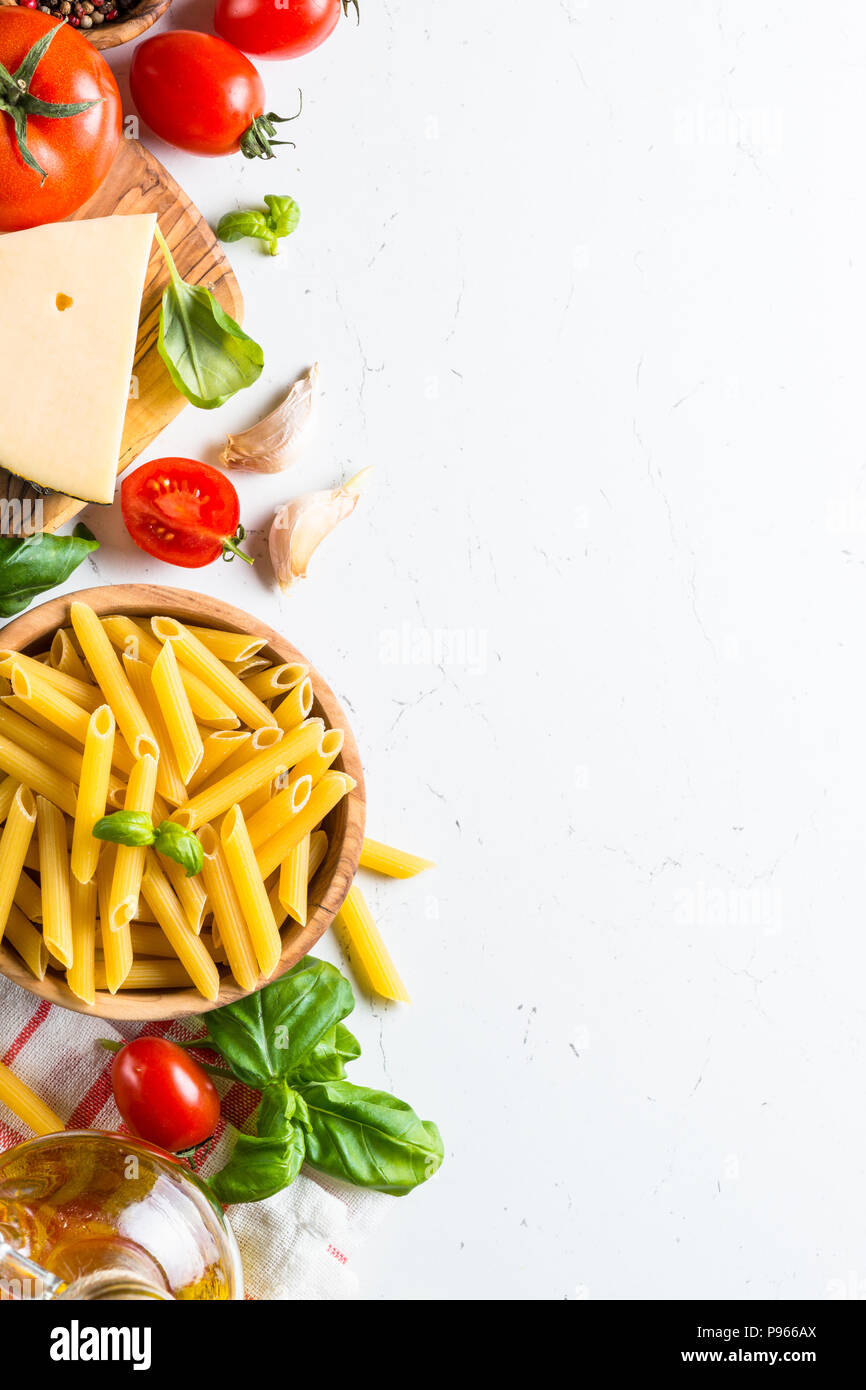 Il Cibo Italiano Sfondo Pasta Pomodori Erbe E Verdure Sul Tavolo Bianco Vista Superiore Copia Dello Spazio Foto Stock Alamy