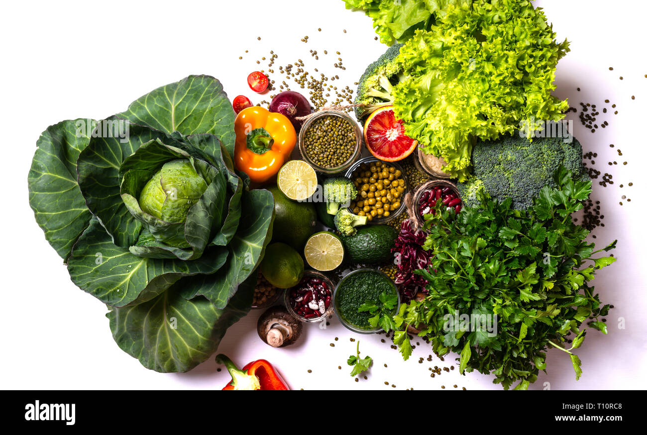 Cibo Sano La Verdura E La Frutta Su Sfondo Bianco Foto Stock Alamy
