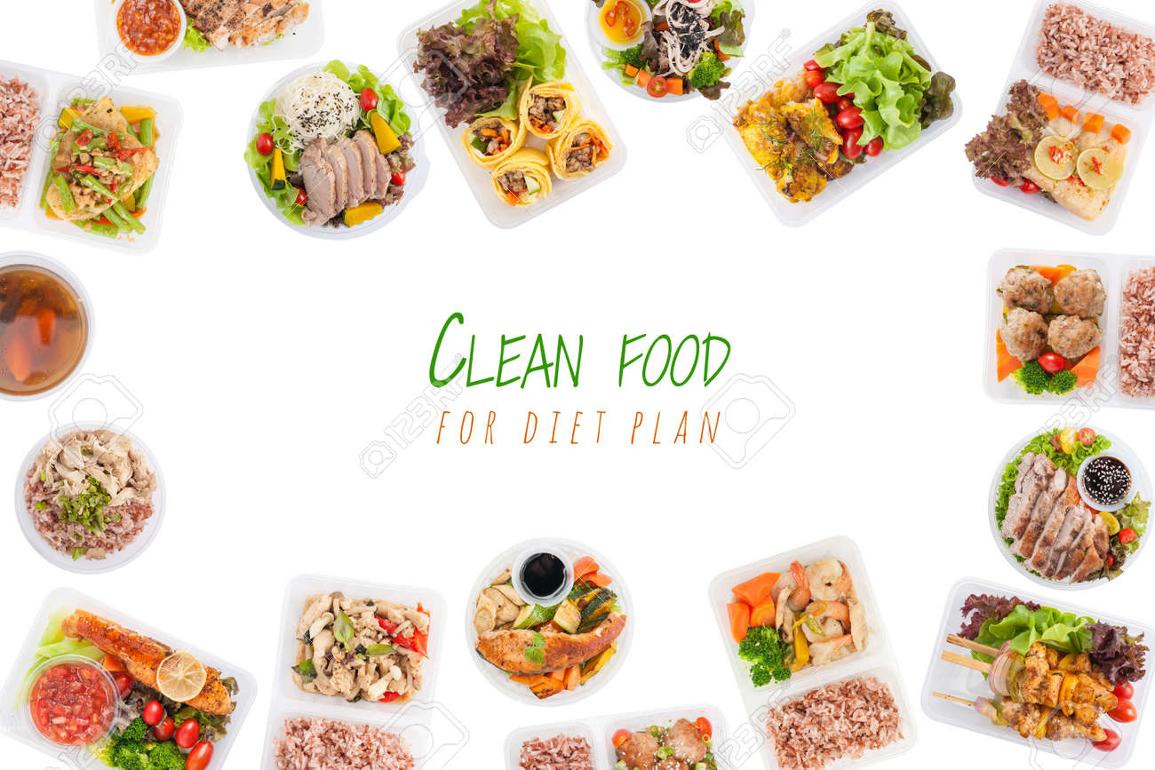 Immagini Stock Il Cibo Pulito Per Il Piano Di Dieta E Scritto Su Sfondo Bianco Con Una Cucina In Stile Moderno Cucinata Secondo Un Concetto Di Cibo Pulito Che Include Lo