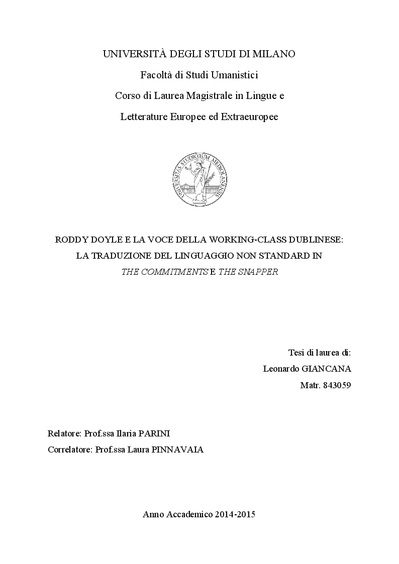 Universita Degli Studi Di Milano Facolta Di Studi Umanistici Corso Di Laurea Magistrale In Lingue E Letterature Europee Ed Extraeuropee Roddy Doyle E La Voce Della Working Class Dublinese Tesionline