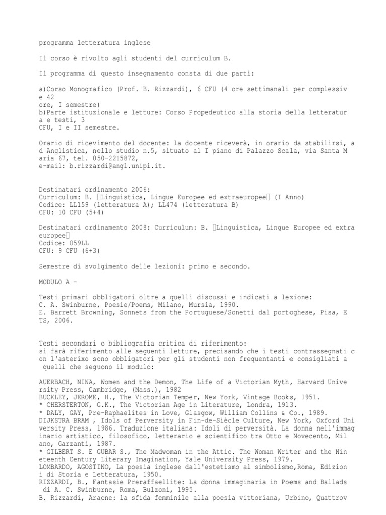 Programma Letteratura Inglese
