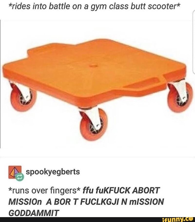 Rides Into Battle On A Gym Class Butt Scooter U Spookyegberts Runs Over fingers Ffu Qufuckabort Mission A Bor T Fuclkgji N Mlssion Goddammit Ifunny