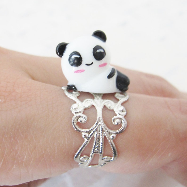 Panda Ring In Silvery Metal Manga Jewelry Magical Jewelry Etsy