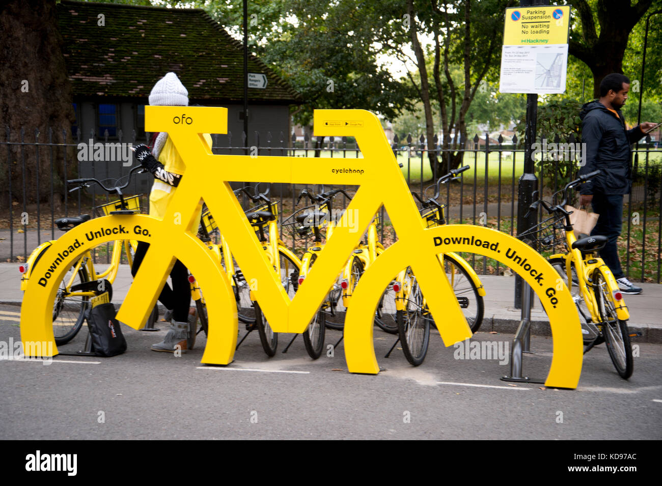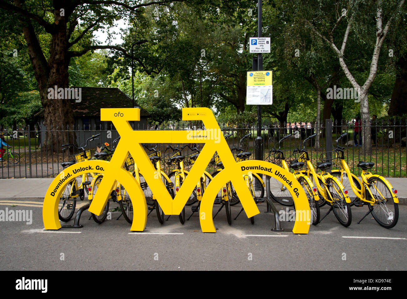 Ofo Dockless Giallo Bike Sharing Campi Di Londra Foto Stock Alamy