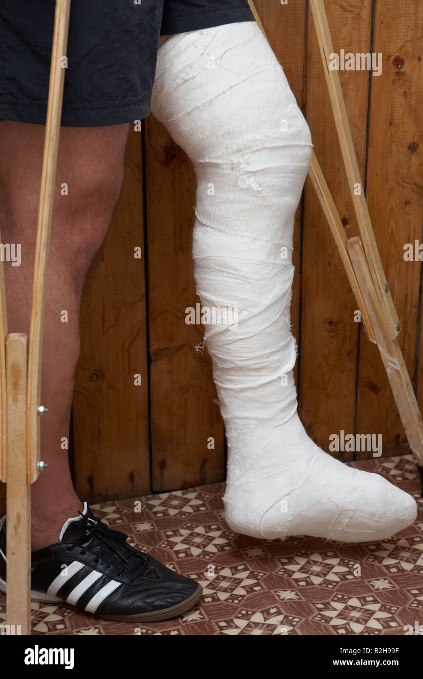 Gamba In Gesso E Due Stampelle Foto Stock Alamy