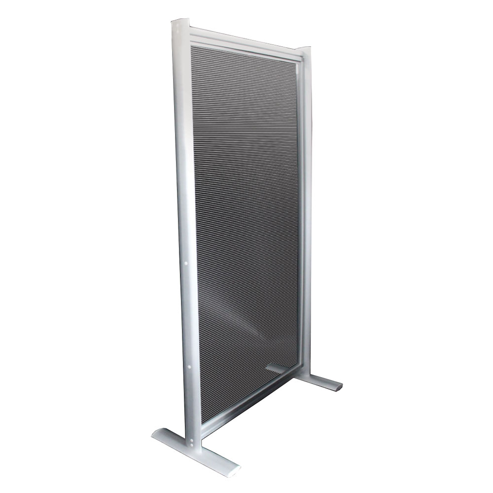 Struttura autoportante in alluminio che appoggia al pavimento per schermatura totale e divisorio protettivo con unico pannelloLa struttura formata da profili quadrati con pannello policarbonato alveolare trasparente di spessore 4 mm e. Pannello alveolare in alluminio B con bassa propagazione s1 nessun sviluppo di fumo d0 Nessuno sgocciolamento EDILIZIA PAVIMENTO UNI EN Bfl s1 d0 BASSA PROPAGAZIONE COMPOCEL AL FR Certificato di classe N COMPOCEL AL FLOOR, ALURIS, ALUMAN Certificato di classe N COMPOCEL AL FR, FLOOR, ALURIS, ALUMAN. Materiale Alluminio alveolare Peso Specifico 10 kg/m2 Materiale della cornice Alluminio / PVC grigio / PVC nero Spessore 15 / 22 mm Temperatura di Esercizio Max 100°C Macchine da Stampa Compatibili Sistemi di fissaggio per tutte le macchine da stampa serigrafiche e digitali (MHM, MR, ROQ, SCHENK, TEKIND, HEBBECKER, ANATOL, KORNIT, POLYPRINT, etc).