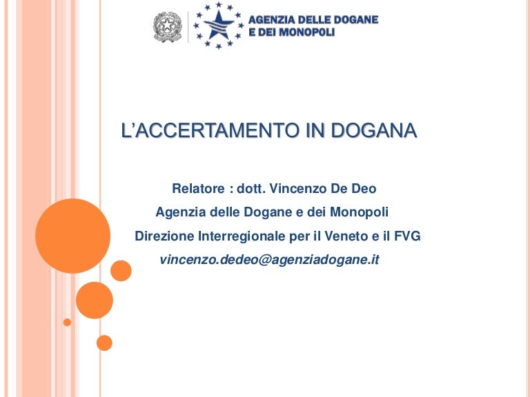 L Accertamento Doganale Dott Vincenzo De Deo