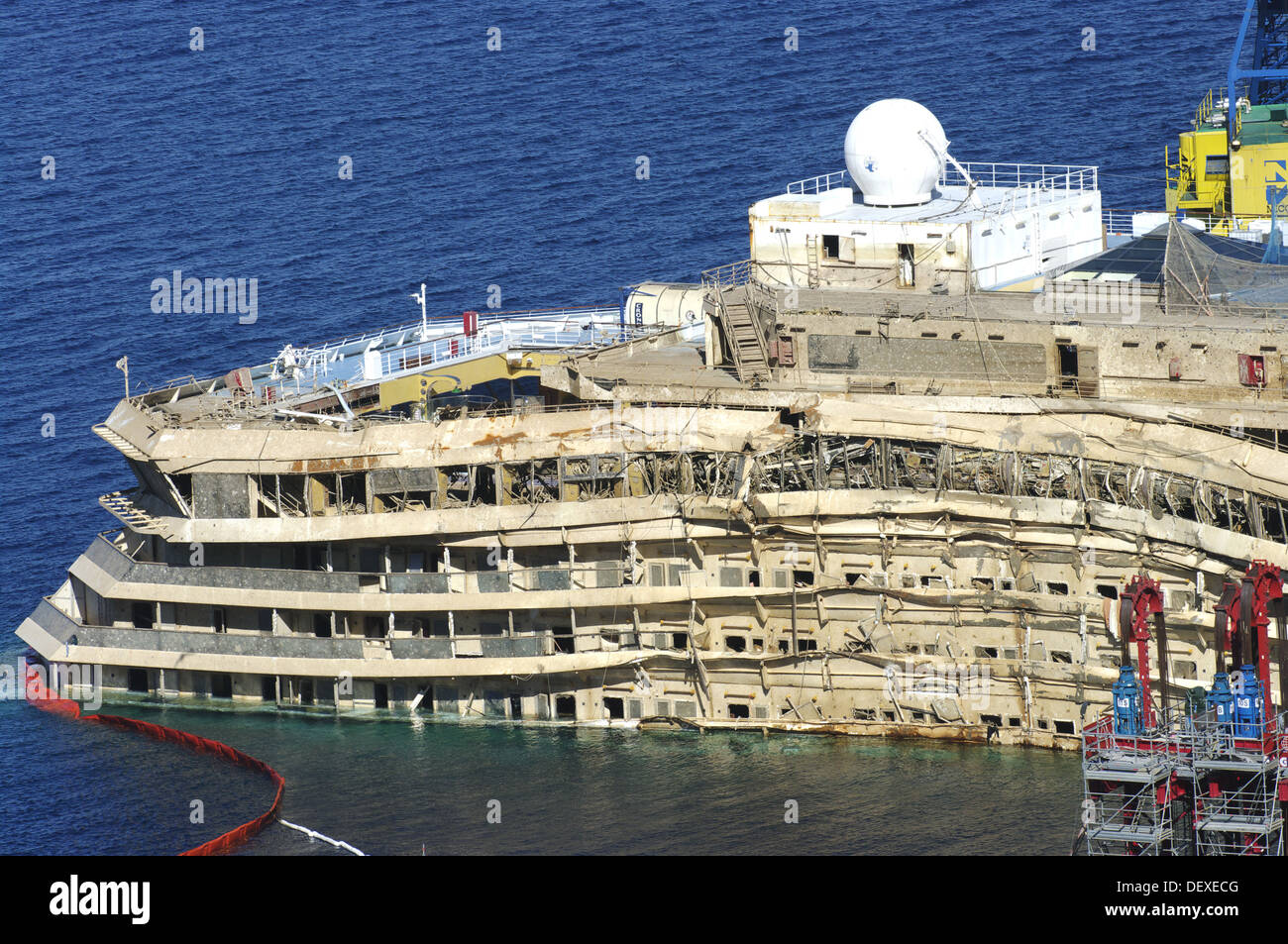 Schaden Sie An Costa Concordia Richtete Sich Nach Parbuckling Operationen An Insel Giglio Italien September 13 Stockfotografie Alamy