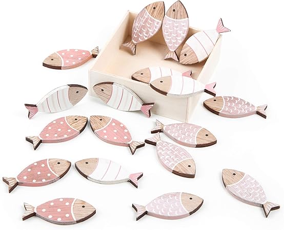 Logbuch Verlag 18 Ciondoli Forma Di Pesce Rosa Fucsia Bianco Legno Bomboniera Decorazione Marittima Bagno Festa Tavolo Battesimo Amazon It Casa E Cucina