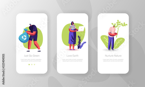 Ecological Issues Environment Care Day Of Earth Mobile App Page Onboard Screen Set People Caring Of Plants Volunteers Saving Nature Collect Garbage Concept Cartoon Flat Vector Illustration Buy This Stock Vector