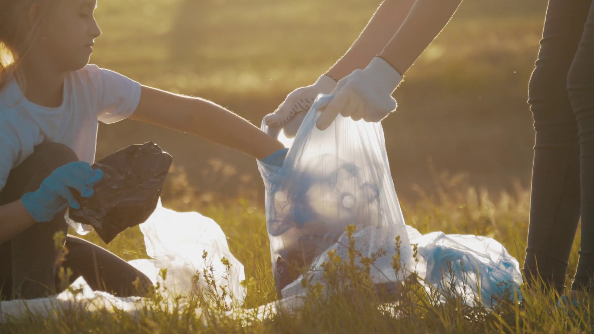 Volunteer Team Family Picking Up Trash And Plastics Cleaning The Park With A Garbage Bag Teamwork And Ecology Environment Protection Pollution Problems Plastic Waste Caring About Nature Concept Stock Video Footage