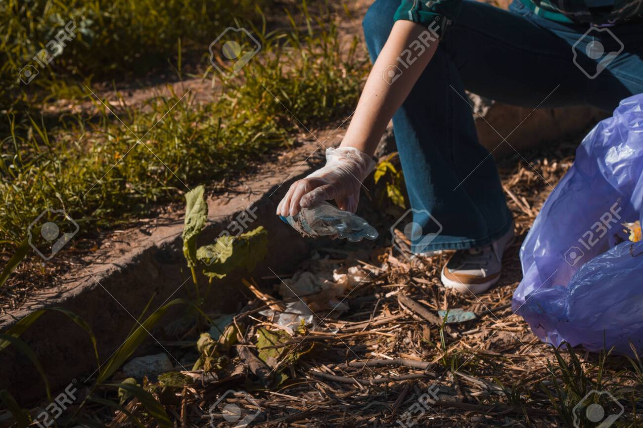 Cleaning Up Garbage Volunteer Work Caring For Nature People Left A Lot Of Plastic Garbage In The Forest Stock Photo Image Of Plastic Collecting