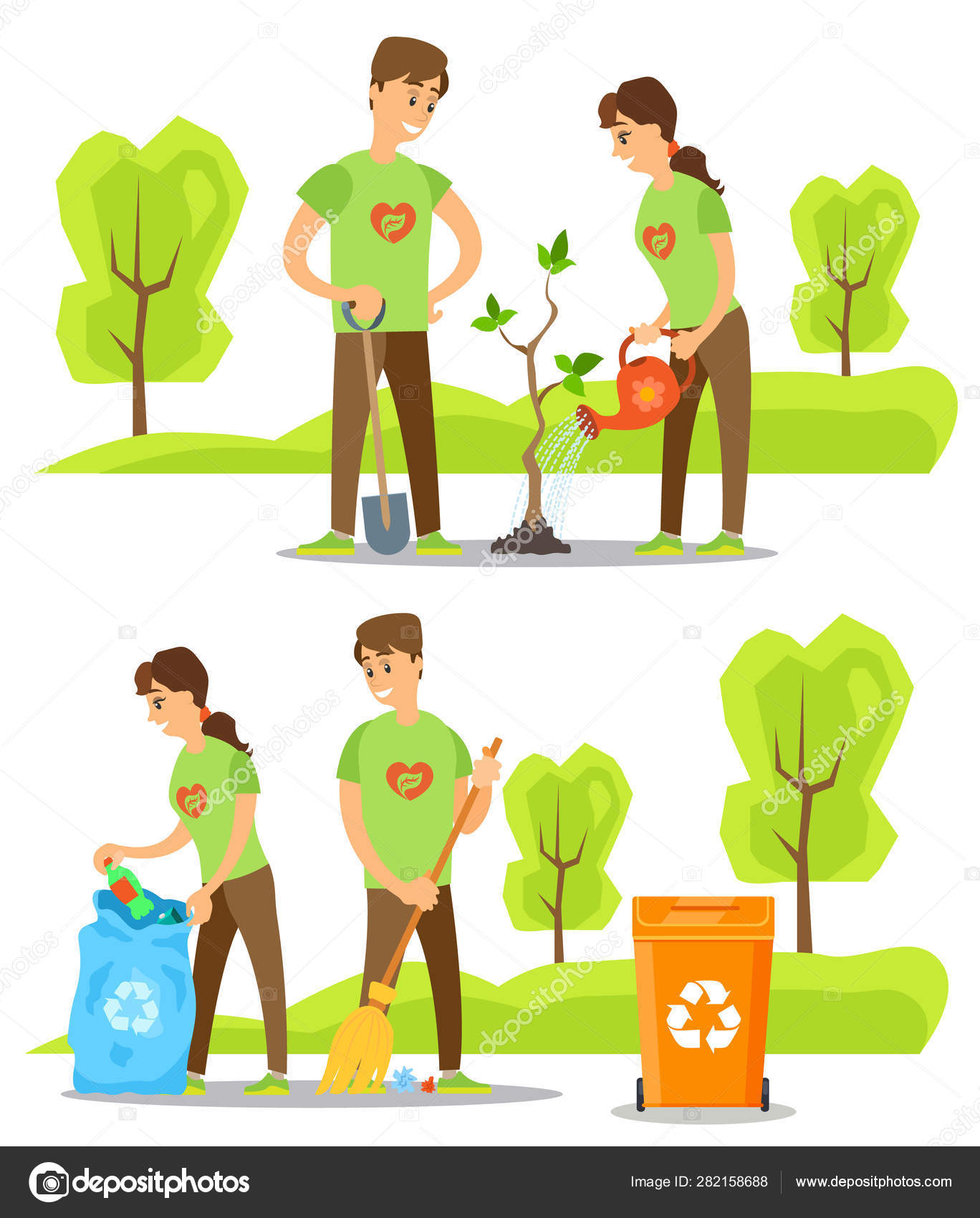 People Caring For Nature Vector Volunteering Man And Woman With Royalty Free Cliparts Vectors And Stock Illustration Image