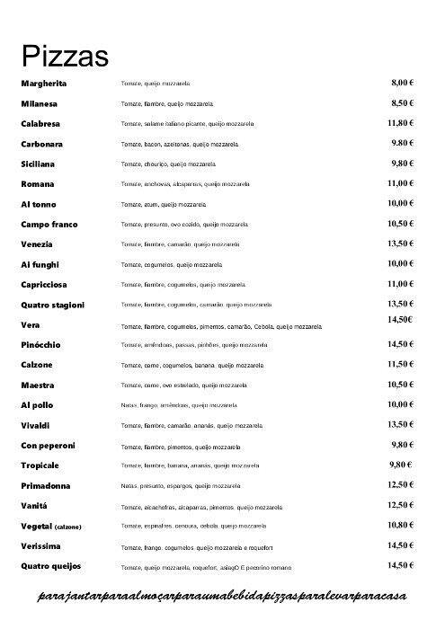 Ma Che Pizza Menu Menu For Ma Che Pizza Carcavelos Lisboa