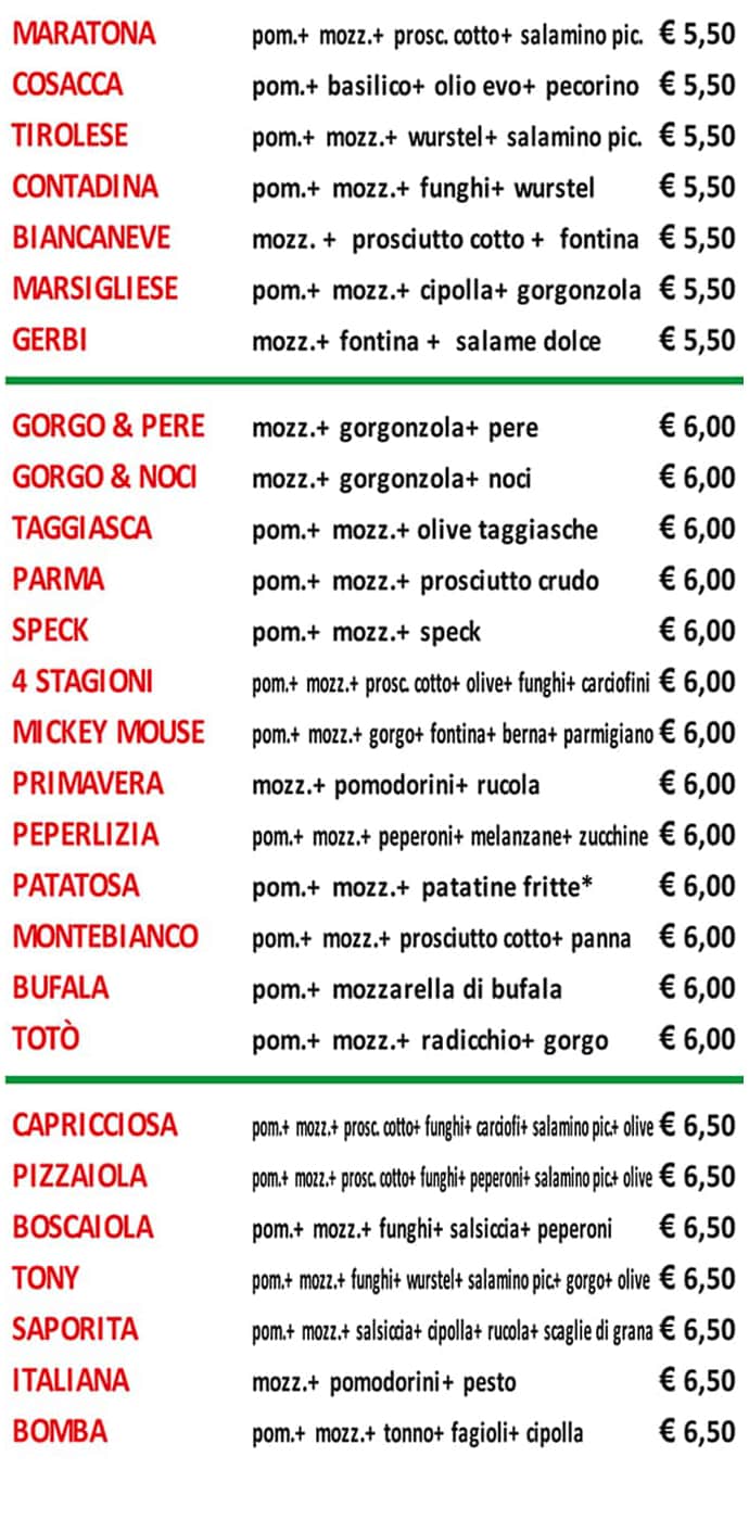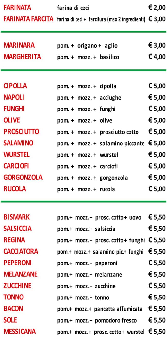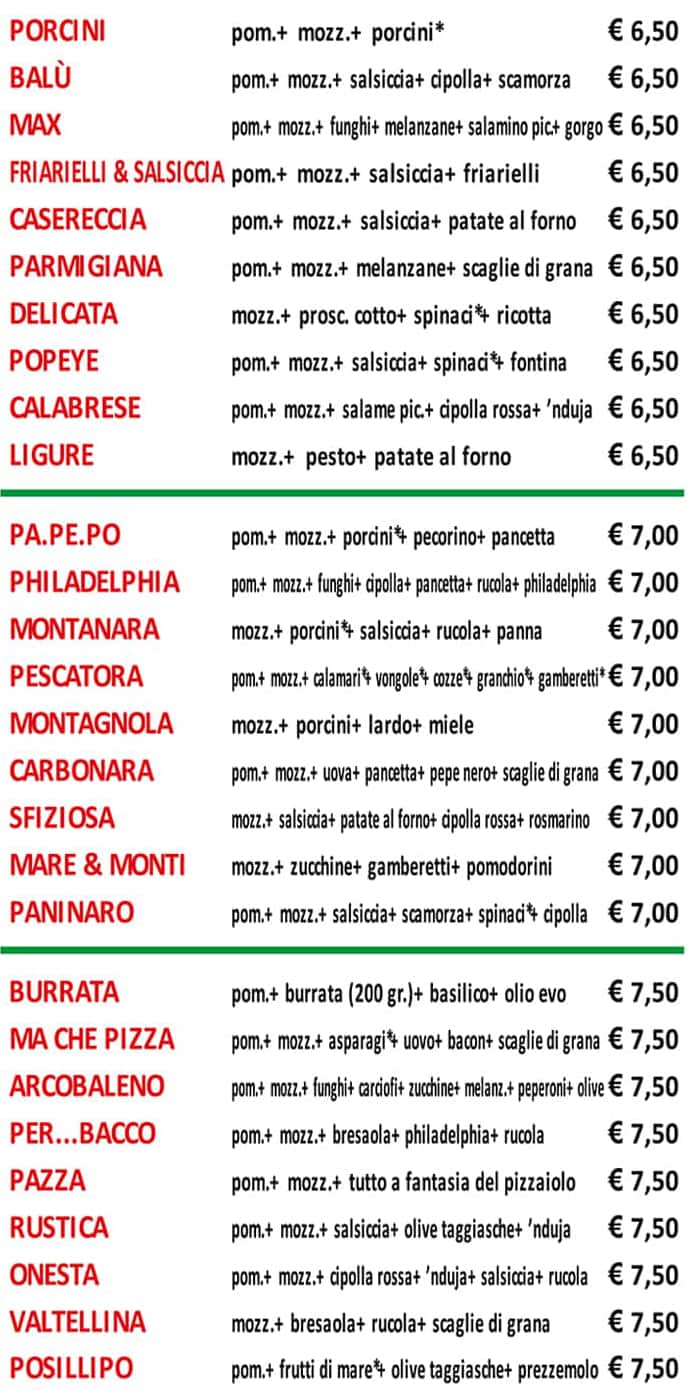 Ma Che Pizza Menu Pizze Focacce Dolci Kebab Hot Dog Birre E Bibite