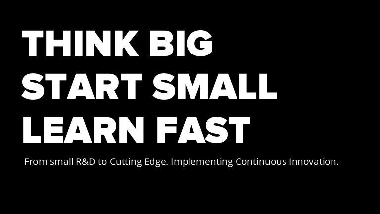 The successful ones think big, start small and learn fast The failures do not Think Big By think big, we mean that successful innovators consider the full range of possible futures They make sure they understand the emerging technology context, rather than assume that their current assumptions are right. #MichaelFranti #WorkHardandBeNice"Start Small Think Big" is out now https//orcdco/workhardandbenice Work Hard and Be Nice Album out NOW https//orcd. Amazoncom Think Big, Act Small How America's Best Performing Companies Keep the Startup Spirit Alive () Jennings, Jason Books.