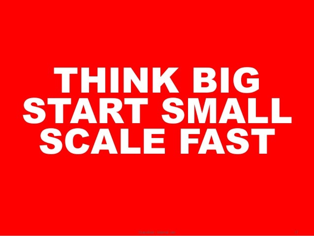 Think big start small. ”Think big, start small, scale fast” – A practical example From 0 to high tripledigit policy sales a week in 18 months Context & Challenge Baloise is a Swiss insurer that traditionally relied heavily on an agent led distribution model, with their 700 tied agents selling a range of P&C and life products across the country That model. 1) It encourages you to get started Expertise develops from the accumulation of simple lessons learned over the course of time When you accomplish a small step, you provide yourself encouragement that you can accomplish the next step after that. The key to success for most entrepreneurs is learning to toggle back and forth between thinking big and moving things forward, which often requires taking small manageable steps Here are three.