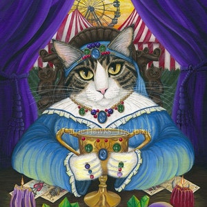 Fortune Teller Cat Psychic Tarot Card Art Queen Of Cups Cat Etsy