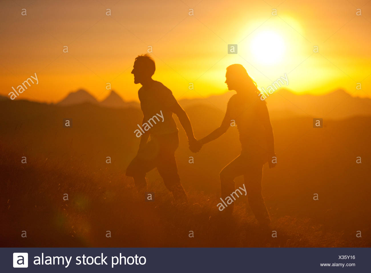 Pareja Sundown Puesta De Sol Montana Montanas Mujer Mujer Adelboden Sol Caminatas Trekking Canton De Berna En El Oberland Obe Fotografia De Stock Alamy