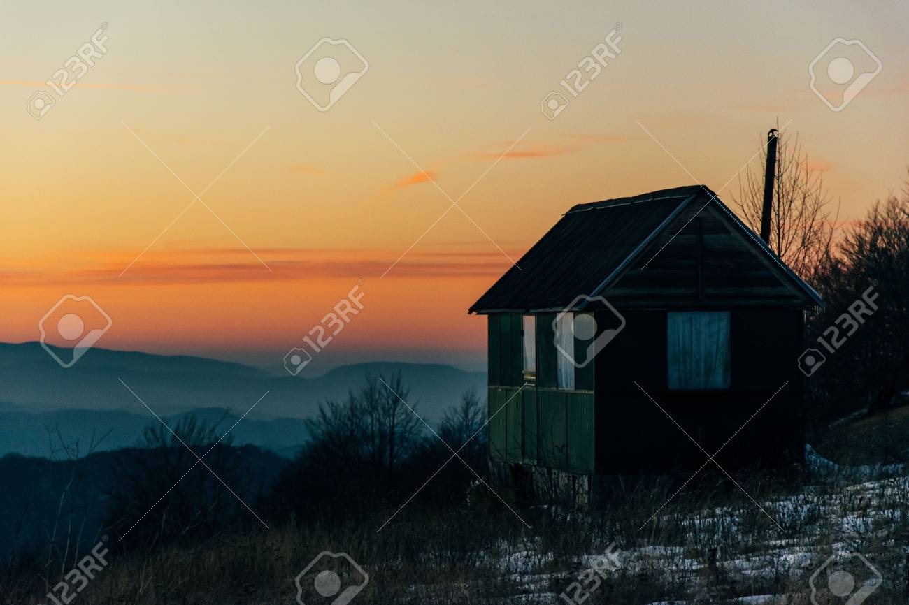 Casa En Las Montanas Con Puesta De Sol Fotos Retratos Imagenes Y Fotografia De Archivo Libres De Derecho Image