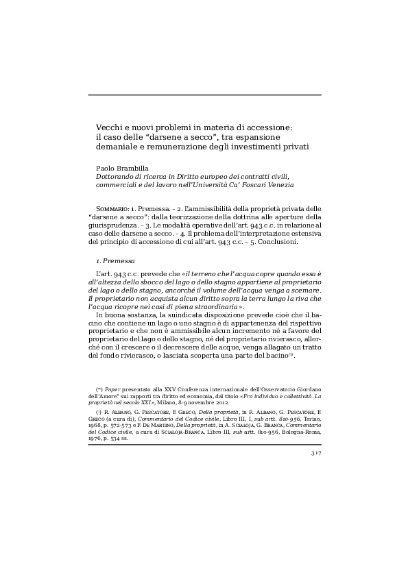 Pdf Vecchi E Nuovi Problemi In Materia Di Accessione Il Caso Delle Darsene A Secco Tra Espansione Demaniale E Remunerazione Degli Investimenti Privati In Ricerche Giuridiche Paolo Brambilla Academia Edu