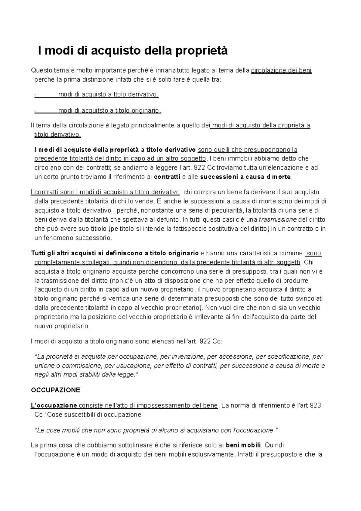 Modi Di Acquisto Della Proprieta Modi Di Acquisto Della Articolo 922 Prevede Studocu