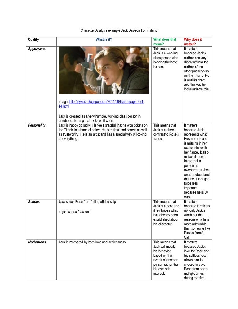 Character Analysis Example Jack Dawson From Titanic