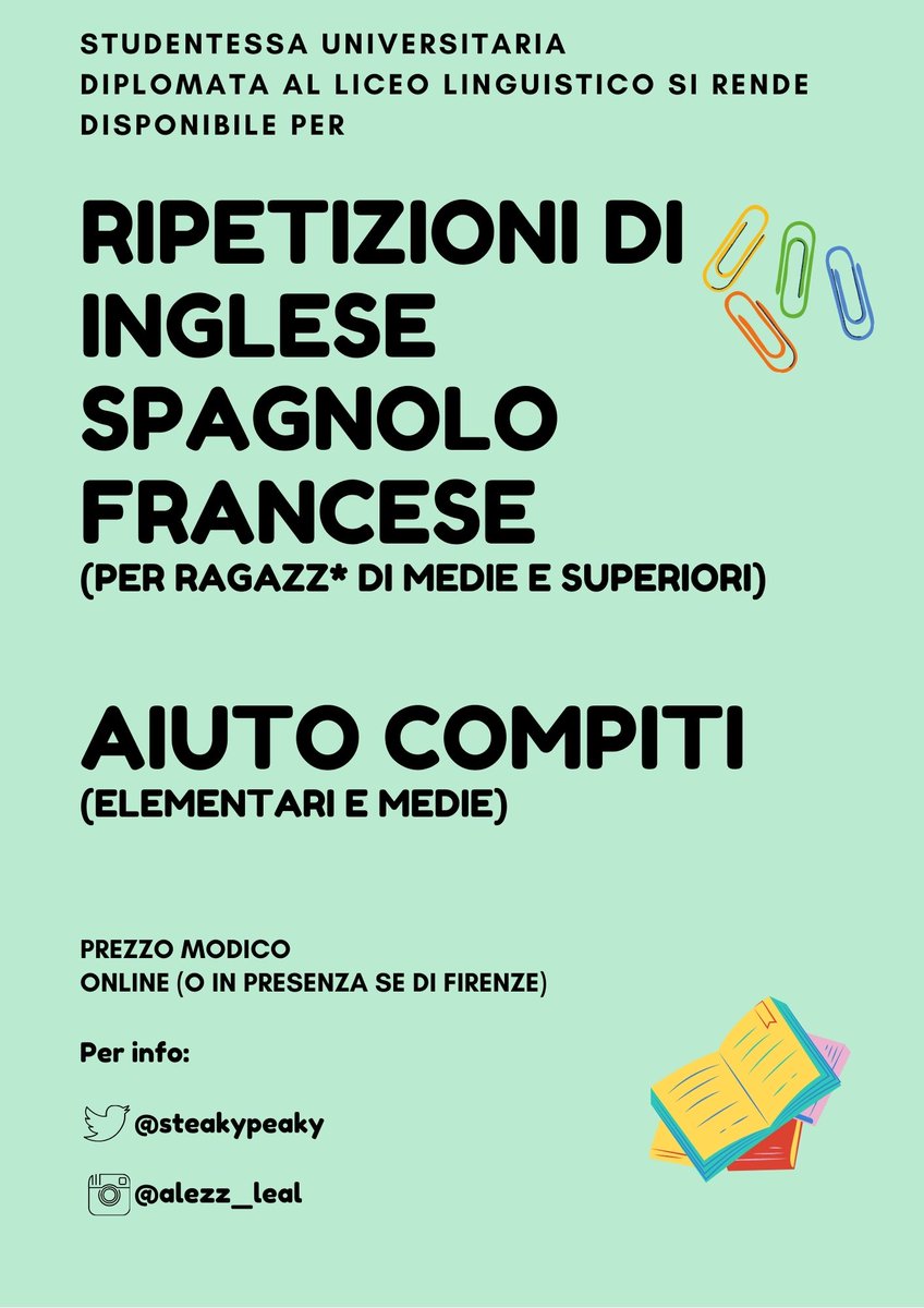 Disponibile in 5 lingue (Francese, Inglese, Italiano, Spagnolo e Tedesco) ed i suoi studenti e tutor provengono da più. Di scegliere l’orario che preferisci o il professore che. Offro aiuto compiti e ripetizioni di inglese per bambini Inglese Aiuto compiti per bambini, ripetizioni di inglese Residente a Rimini, automunita Massima serietà.