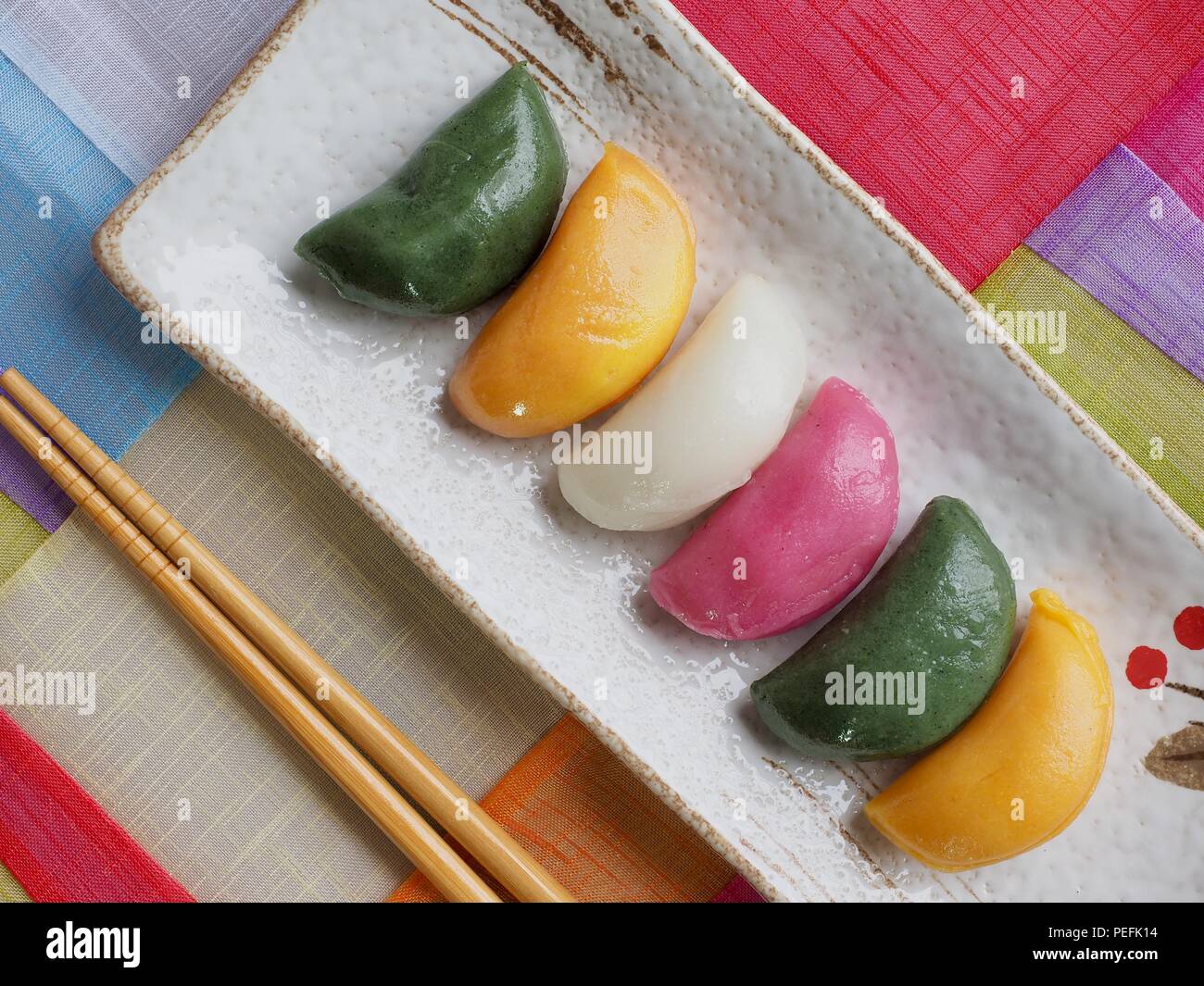 Comida Coreana Songpyeon Media Luna En Forma De Torta De Arroz Fotografia De Stock Alamy