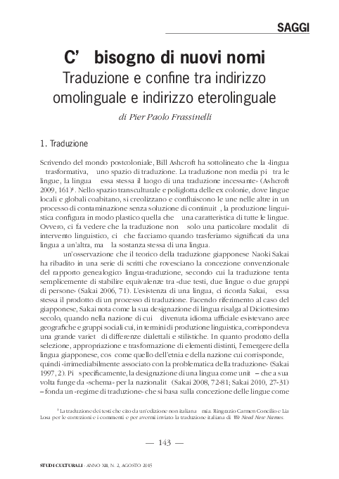Pdf C E Bisogno Di Nuovi Nomi Traduzione E Confine Tra Indirizzo Omolinguale E Indirizzo Eterolinguale Pier Paolo Frassinelli Academia Edu