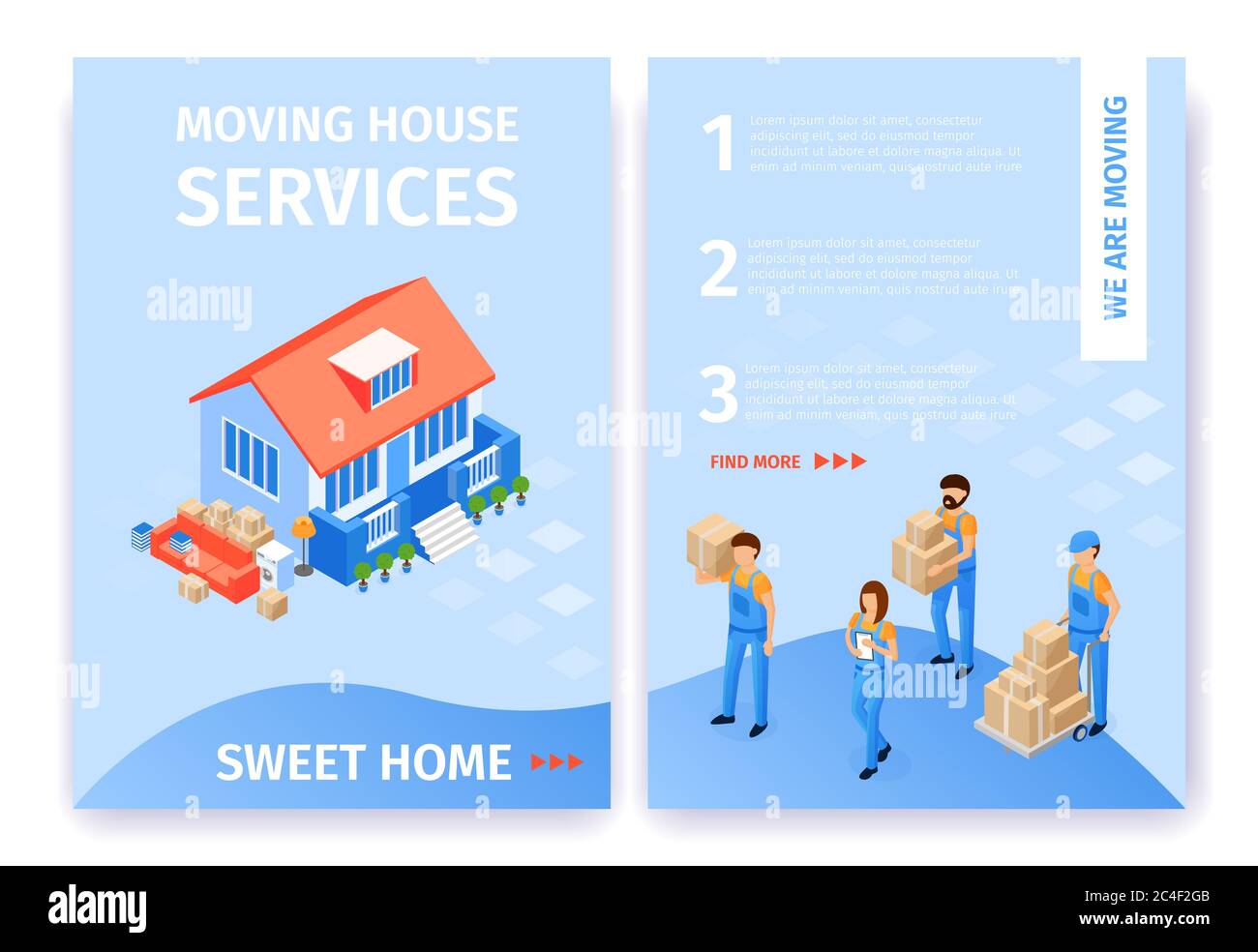 Set Moving House Services Sweet Home Flat Cartoon Beside Beautiful House Are Unloaded Boxes And Furniture Uniformed Transportation Staff Carry Cardb Stock Photo Alamy