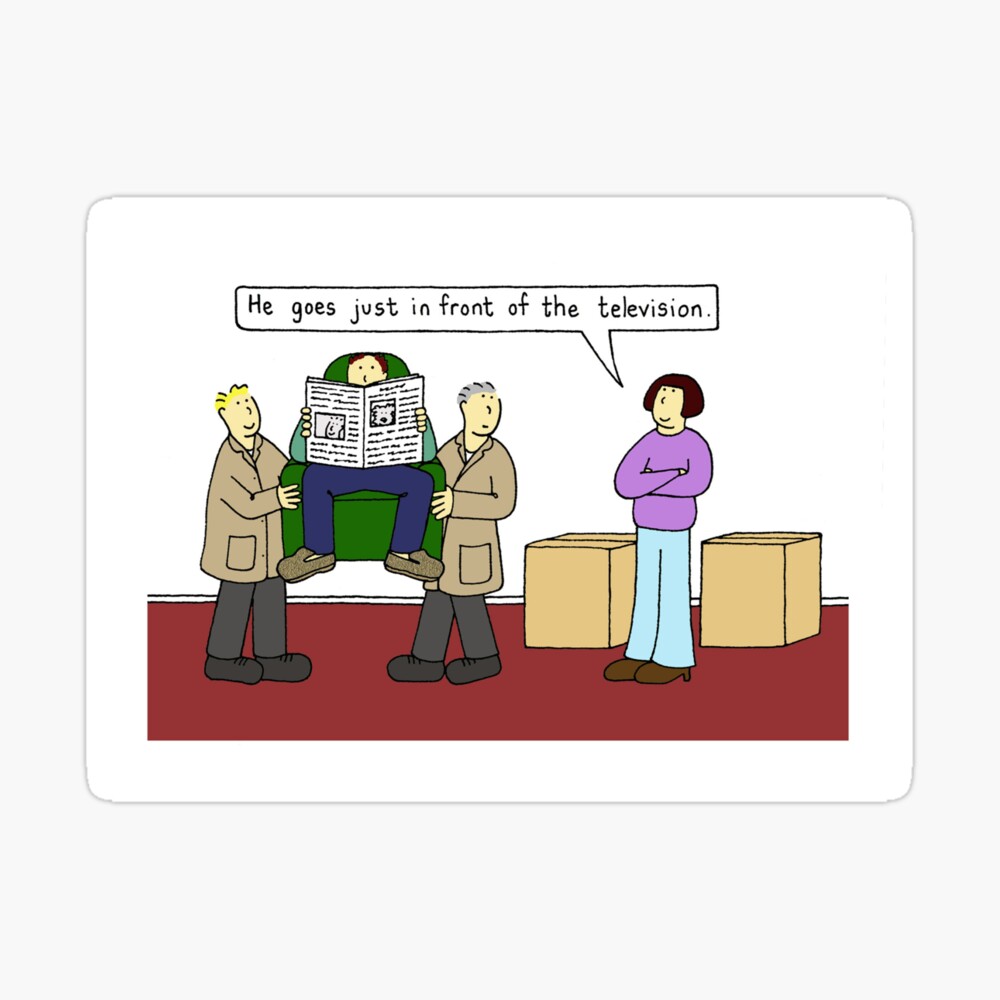 Moving House Cartoon Man Being Put Near The Tv Cartoon Greeting Card By Katetaylor Redbubble