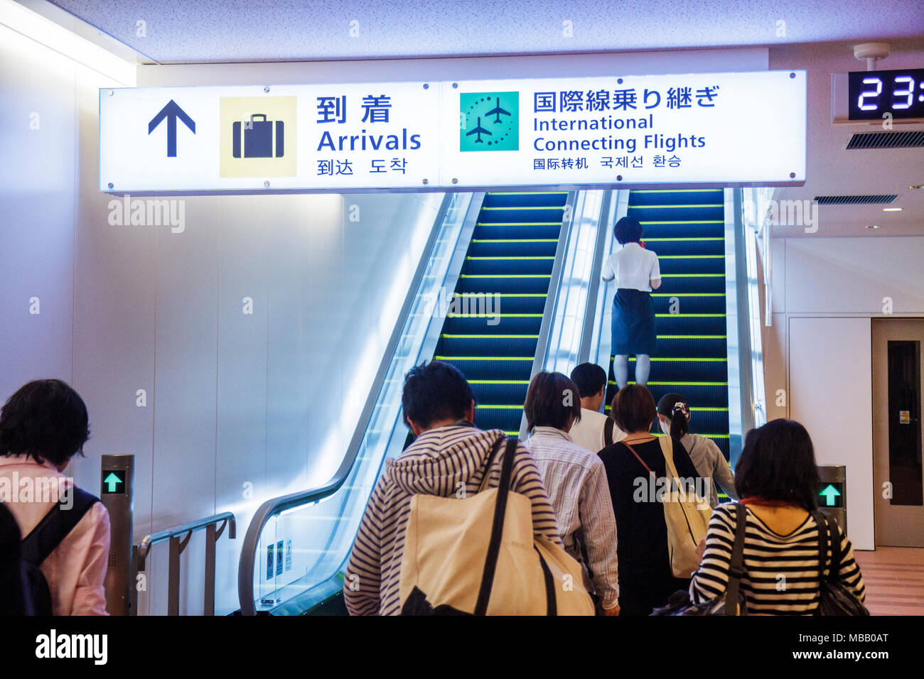 Giappone Tokyo Asia Oriente Aeroporto Haneda Arrivi Passeggeri In Arrivo Scala Mobile Inglese E Giapponese Insegna Logo Informazioni Indicazioni Kanji Foto Stock Alamy