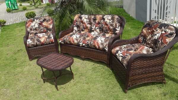 Cjt De Sofas Em Fibra Sintetica Melo 1 Sofa 2l 2 Poltronas 1 Mesa Centro Moveis Para Varanda Revieira Marrom Madeiramadeira