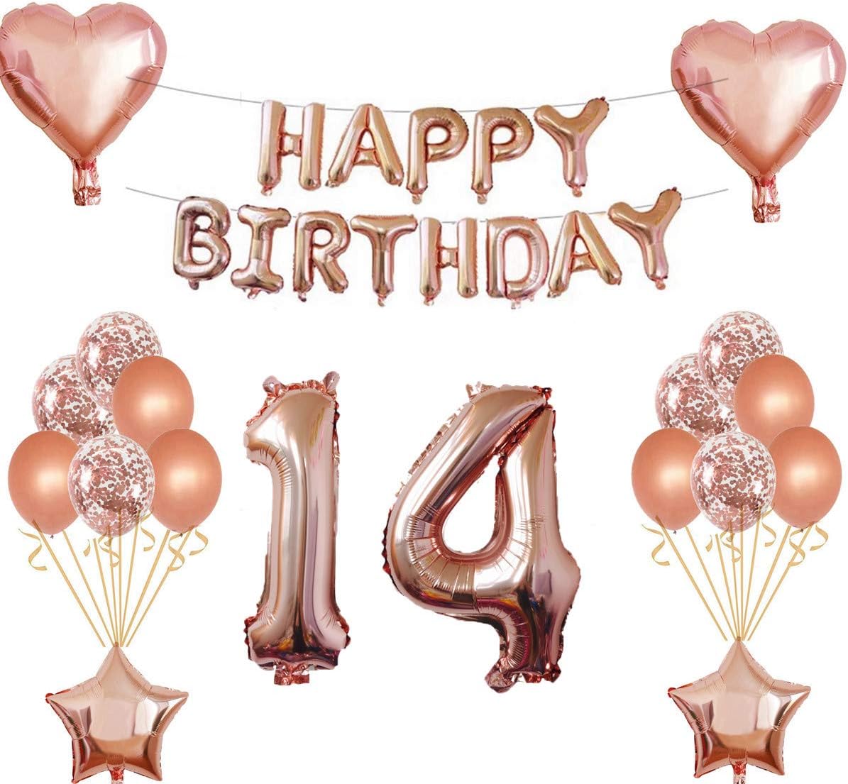 Decorazioni Cameretta Ragazzi 14 Compleanno Deco Per Ragazza Ragazzo Buon Compleanno Ghirlanda Stagnola Palloncino Palloncini Coriandoli Palloncini Deco Compleanno Numero Palloncini 14 Compleanno Ragazza Decorazione Oro Rosa Casa E Cucina Nihon Trim