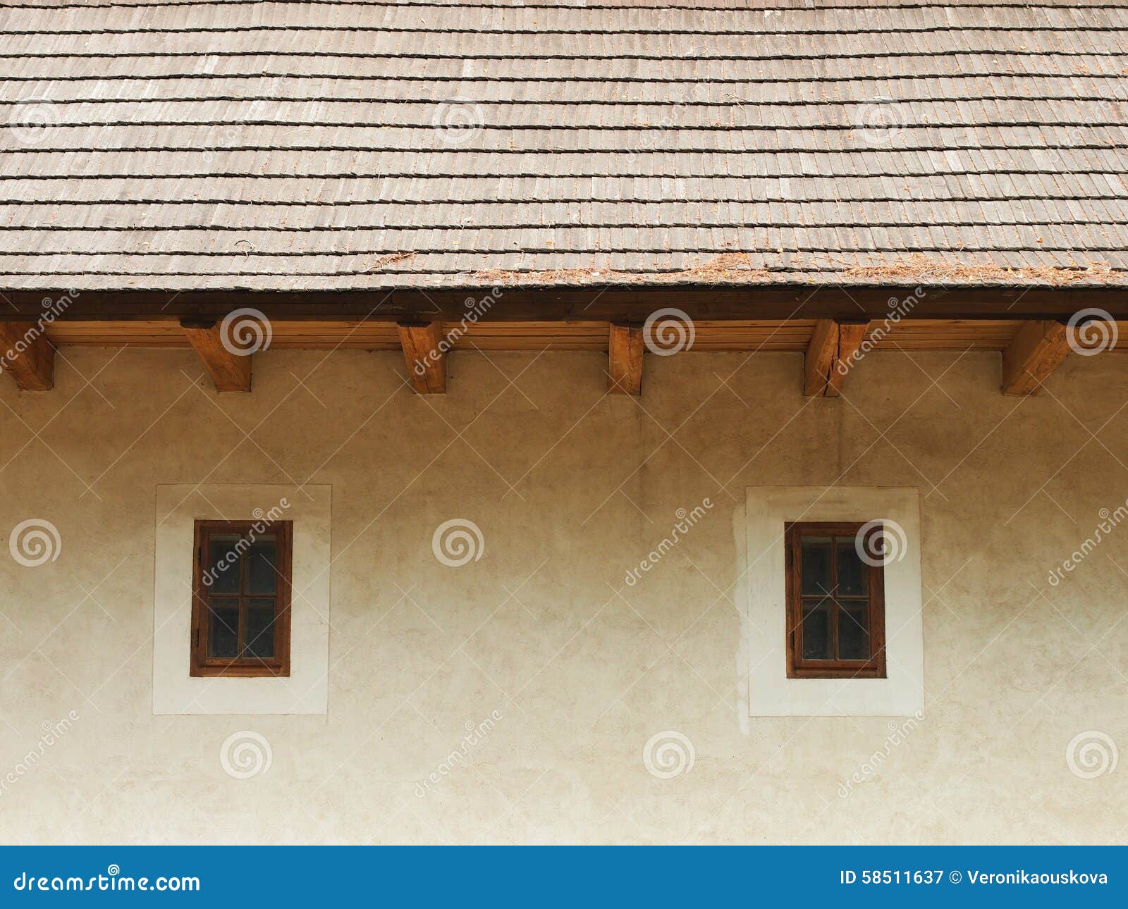 Immagini Stock Piccole Finestre Aperte Sulla Facciata Della Casa Retro Image