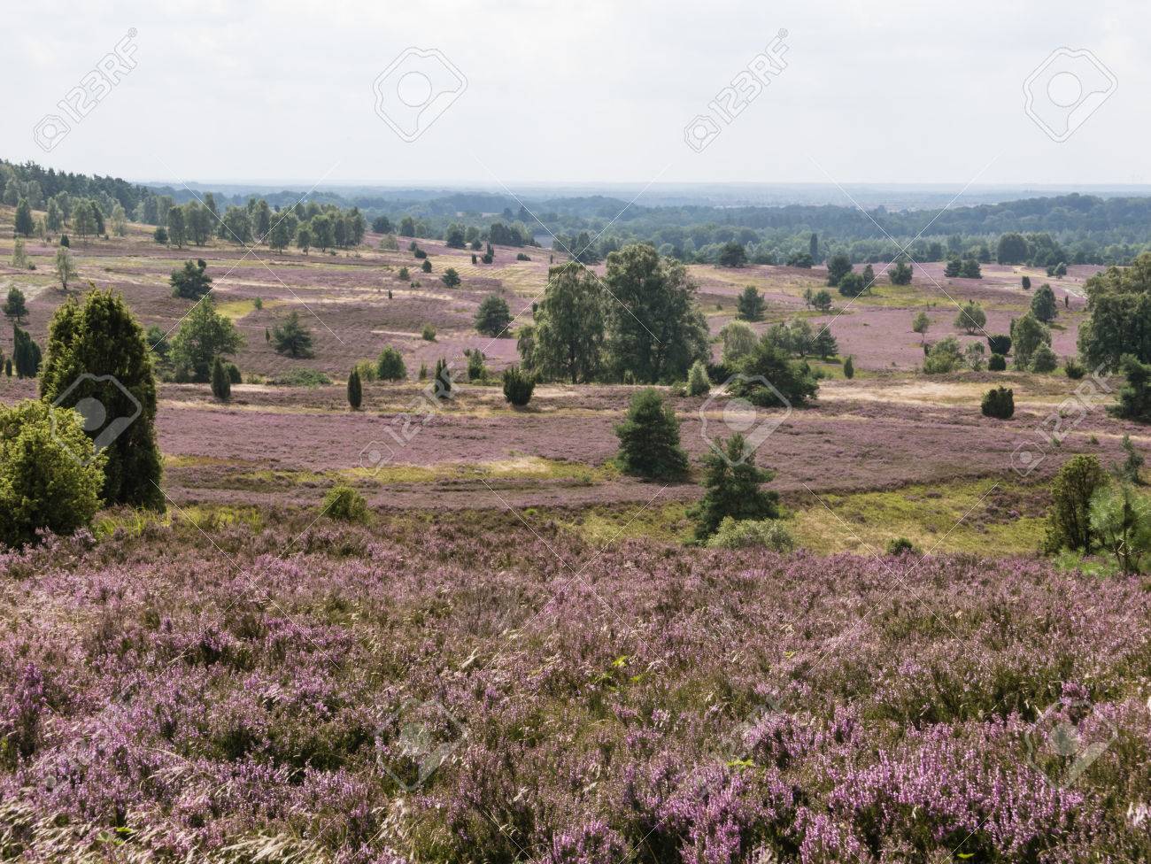 Heather Calluna Vulgaris Plant And Juniperus Communis Trees On Landscape Lueneburger Heide Germany Stock Photo Fotosearch