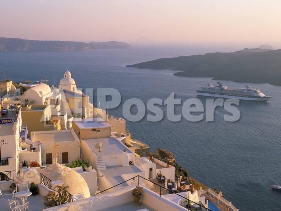 Church And Cruise Ship Fira Santorini Thira Cyclades Greece Wall Art Canvas Prints Framed Prints Wall Peels Great Big Canvas