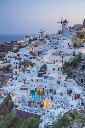 Fira Town At Dusk Fira Santorini Thira Cyclades Greece Stock Photo Alamy
