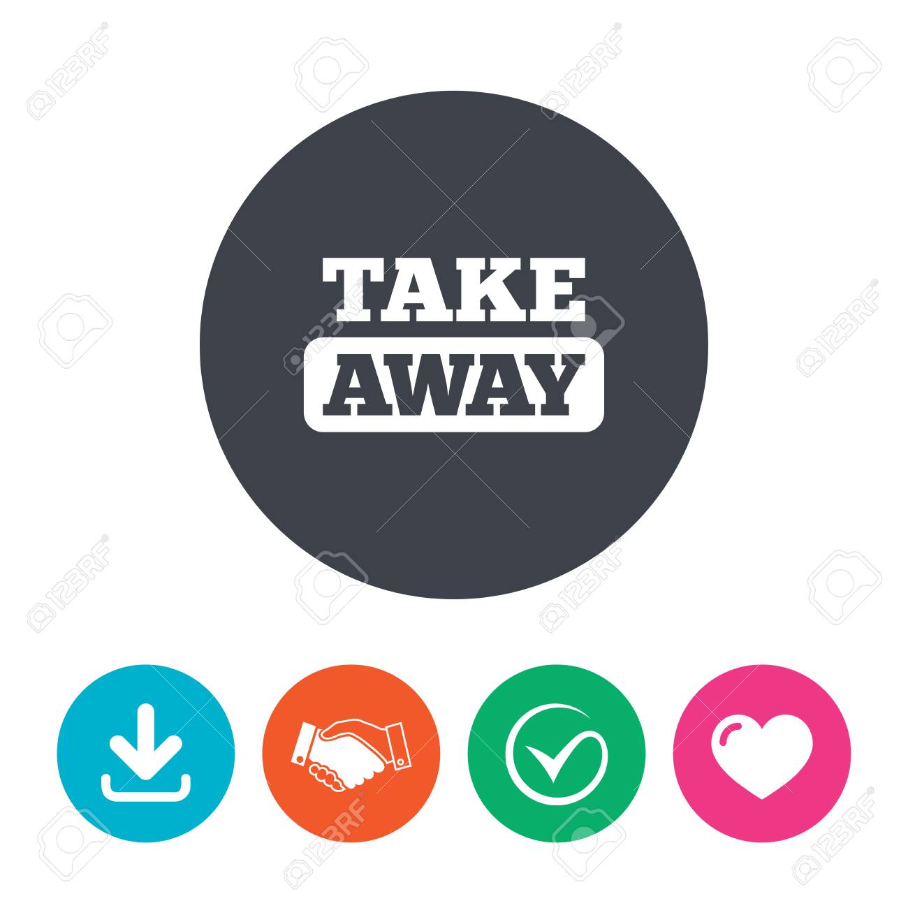 Vettoriale Togliete Il Segno Icona Cibo Da Asporto O Bere Un Caffe Simbolo Scarica Freccia Stretta Di Mano Segno Di Spunta E Il Cuore Piatti Cerchio Pulsanti Image