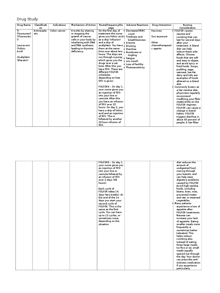 Drug Study Folfox Foods Medical Specialties